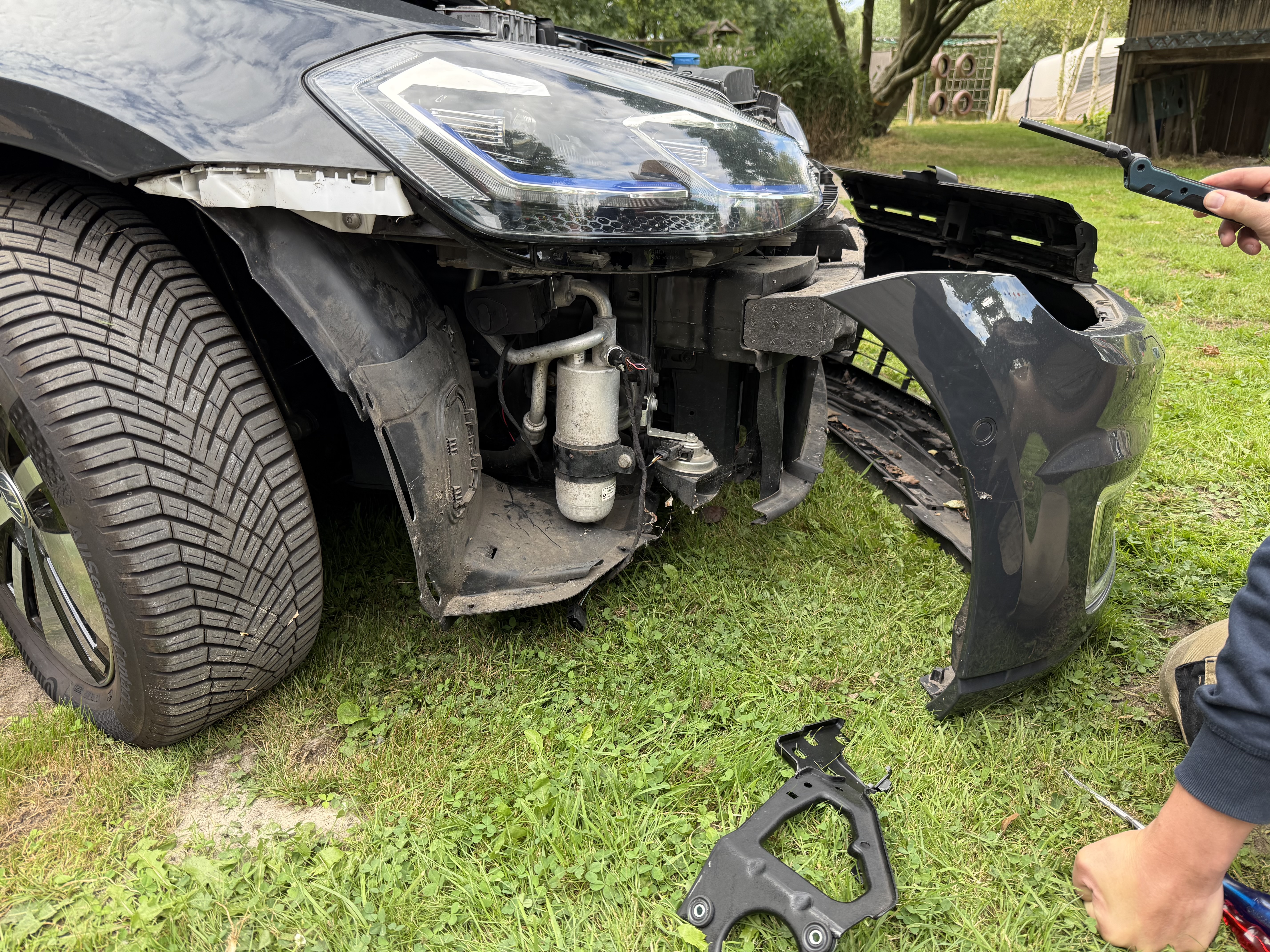 Another friend of mine helped me to remove the bumper carefully. He has enough experience, so it was done without any damage. There are plenty of tutorials on YouTube on how to do this, but my advice is to do this with at least two persons. We also found out that the bumper had been removed before, because two screws below the grill were missing.