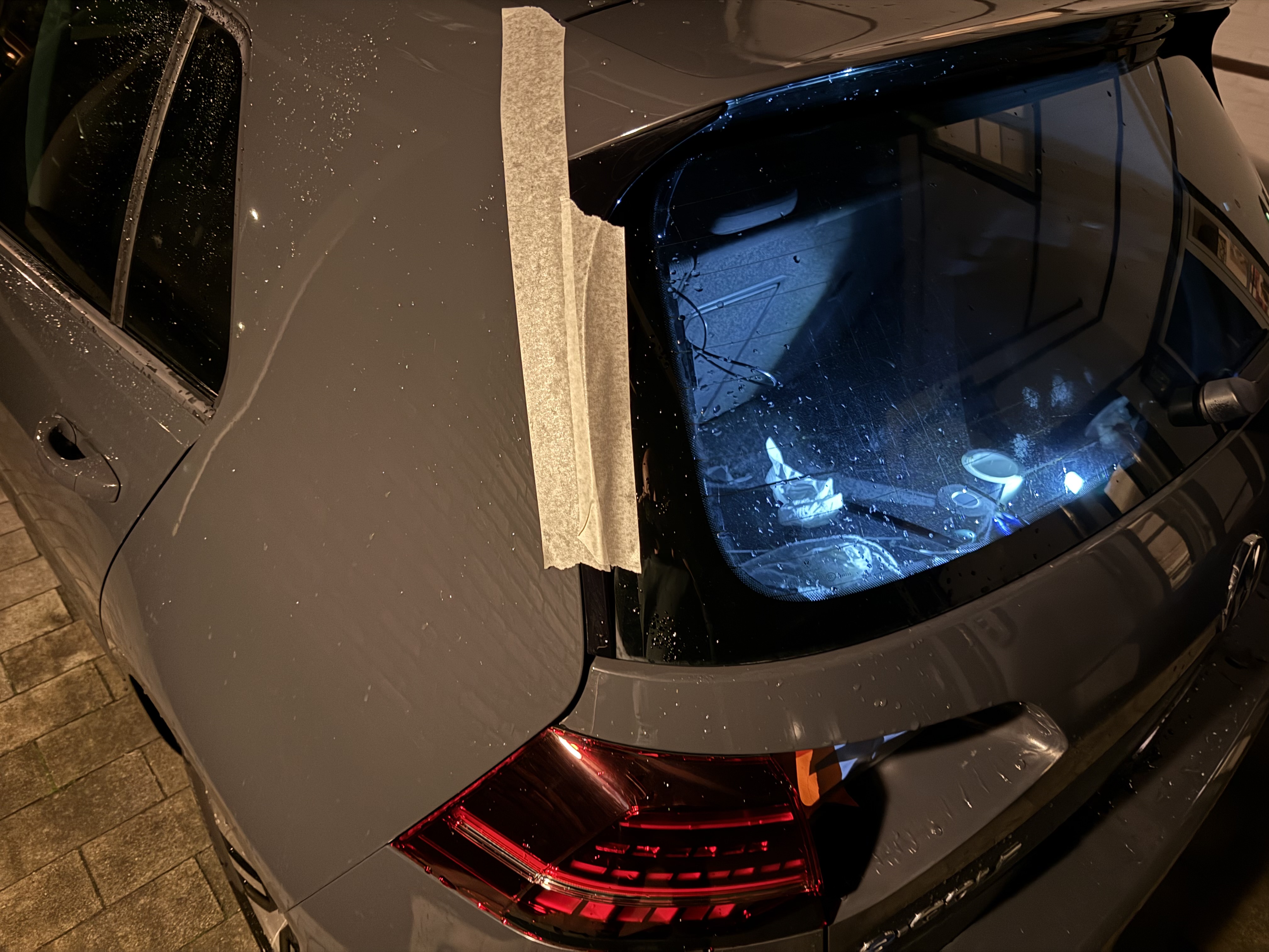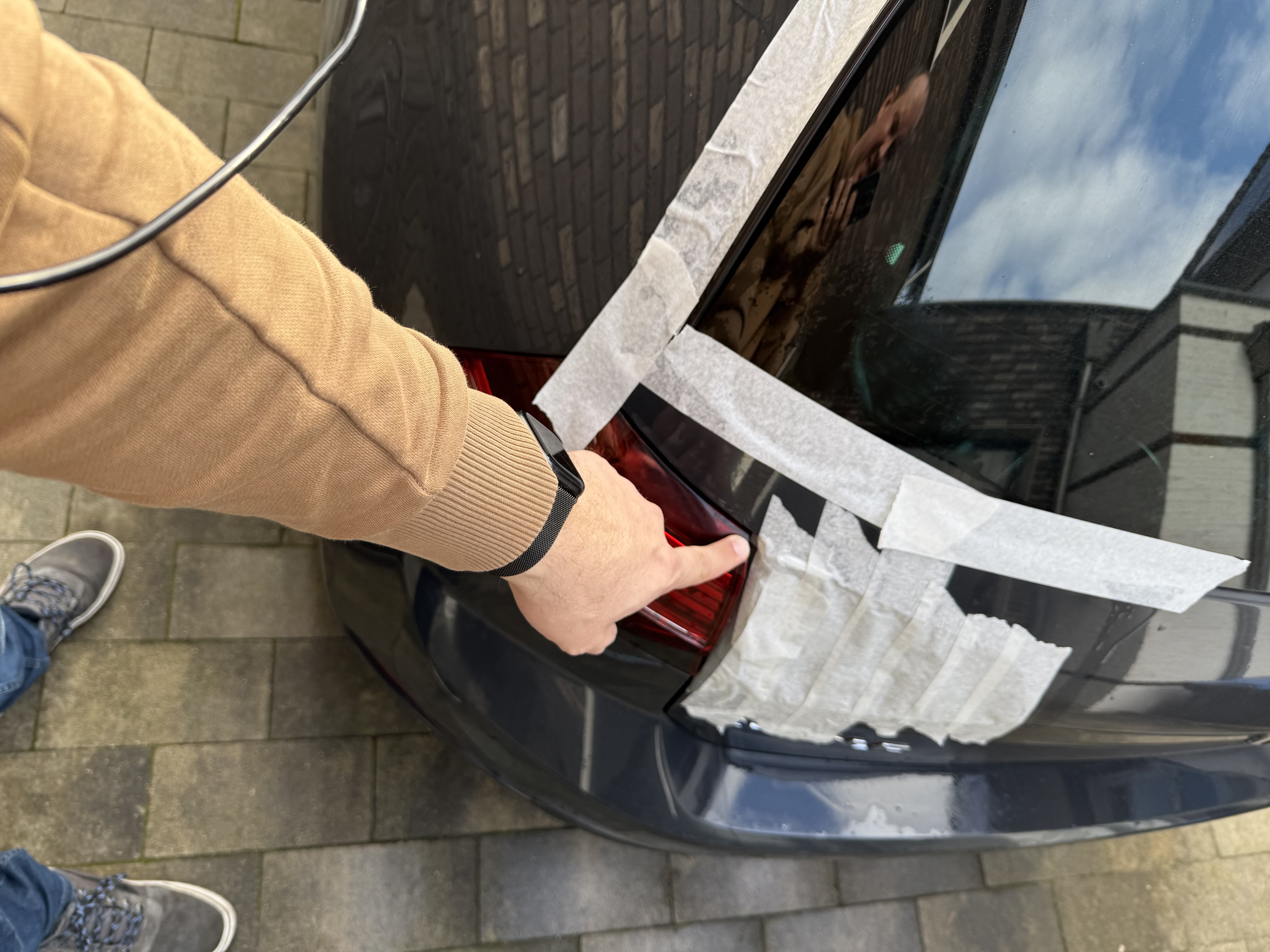 I then focussed on the other possible entry points. I taped up the third brake light area, and also the top seam of the trunk lid. This way, I could rule out if water would enter via the rubber grommets. I found out that water would still enter, but since this could not enter via the top seam nor the third brake light, I had to conclude that water must be entering via the side colums or lower.